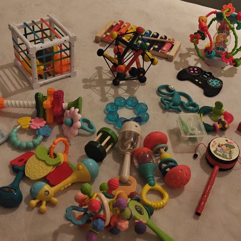 Pent brukt babyleker, perfekt fra nyfødt til 2 år. Totalt 5 leker.