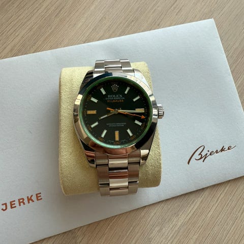 Rolex Milgauss referanse 116400 med hvit skive vurderes solgt.