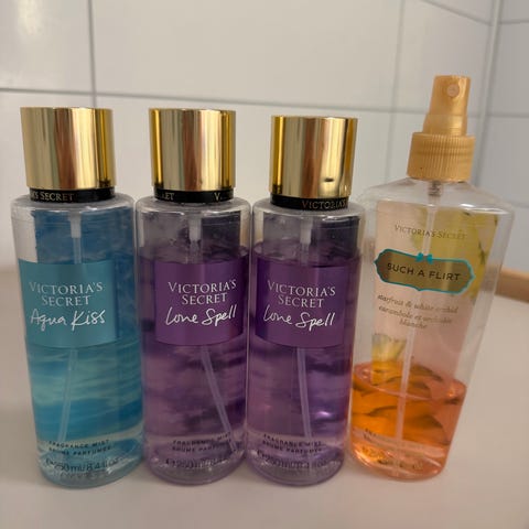 12 kroppssprayer fra Victoria's Secret. Pris 100kr pr stk (75ml)