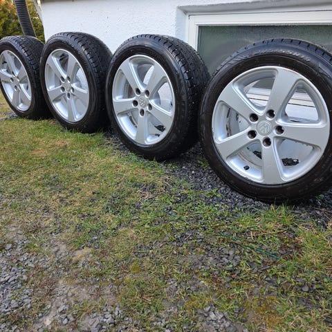 Selger et sett med fire litte brukte vinterdekk (215/65/R16) montert på originale Volkswagen lettmetallfelger, boltsirkel 5x112. Dekkene er piggfrie og har blitt brukt på en Volkswagen Tiguan 2017. Aluminiumsfelger har ingen riper.