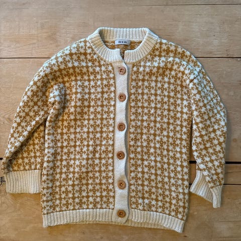 Hjemmestrikket genser med lue og hals. Genseren er lite og pent brukt, luen er kun prøvd på noen ganger og halsen tror jeg ikke er brukt.