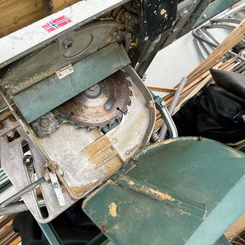 OBS; Denne er ikke veldig pen, MEN i helt ok stand og har nylig blitt brukt til å legge stor terrasse. Her kan en få en billig kapp og gjæresag dersom utseende ikke er så viktig :)