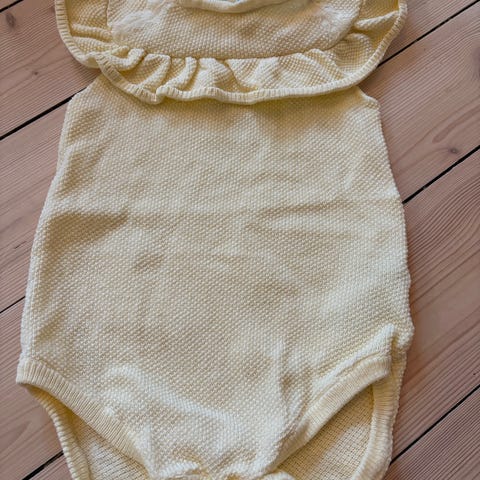 Romper med volanger str 1-2 år, mulig å dy flere knapper på selene og utvide bruken. Babyull. Brukt fåtall ganger.