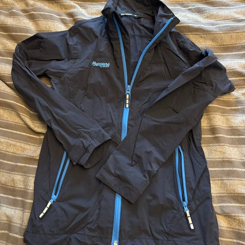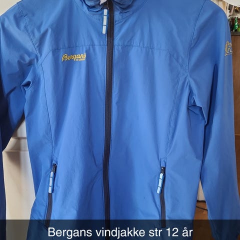 Bergans Vindjakke Blå -Str 152. Jakken har glidelås og to lommer med glidelås.