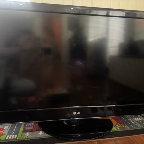 LG TV med fjernkontroll og flere inngangsvalg som DTV, TV, AV1, AV2, HV3, komponent, RGB, HDMI og YPbPr. , menyen har alternativer for automatisk og manuell innstilling samt stasjonsredigering.