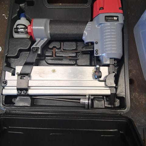 Ny trukkluftdrevet spikerpistol 55-90 mm 34°fra Jula. Ikke brukt. Pris i butikken er 1699.