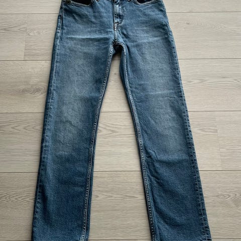 Ganni Sheldon Denim jeans i blå farge, størrelse W27 og S. Laget av 100 % bomull med 1 % elastan for fleksibilitet. Designet for kvinner med normal passform og fem lommer. Kan maskinvaskes ved 30 grader.