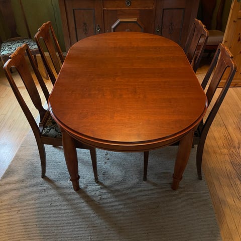 Bordet bærer preg av alder og bruk, med noen merker og mindre skader i fineren, men har en nydelig glød og uttrykk. Stabil konstruksjon. Perfekt for deg som liker klassiske møbler med karakter, eller ønsker et restaureringsprosjekt.