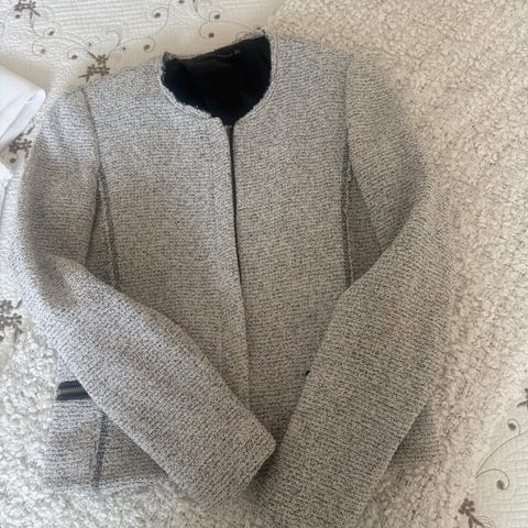 Elegant og tidløs ZARA Basic Collection jakke i strukturert boucléstoff med metalltråder som gir et lett skimmer.