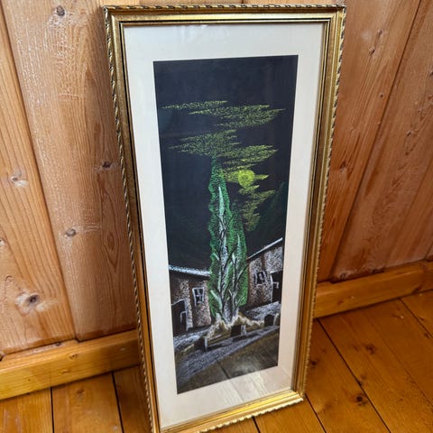 Bildet er innrammet, og rammen har noen merker og flekker, spesielt nederst på bildet – se bilder for detaljer. Dette gir et lett vintage-preg, men kan enkelt restaureres ved behov.