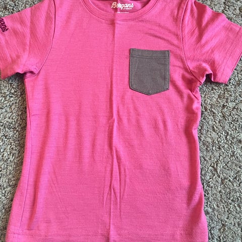 Ny/ubrukt Bergans ullgenser kløfri i str 104. Trøyen er rosa med detaljer i grått på knappelukking og er laget i kløfri 100% merinoull. Aldri brukt, bittelitt hull som lett kan fikses.