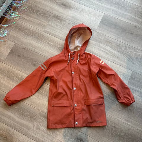 Pent brukt regnjakke med reflekser.