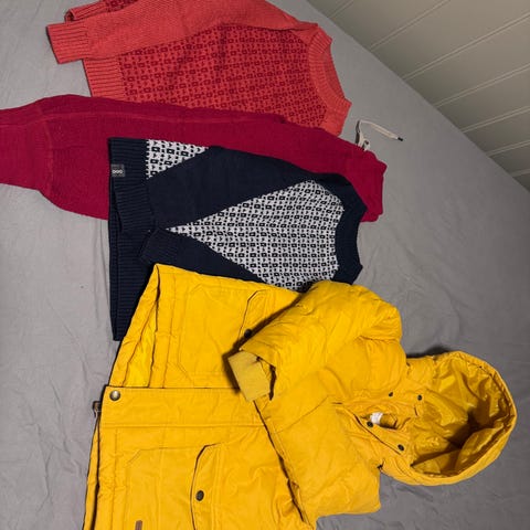 God og varm ullgenser fra Lanula og en tykk fleeze jakke fra Bergans i str 122-128.