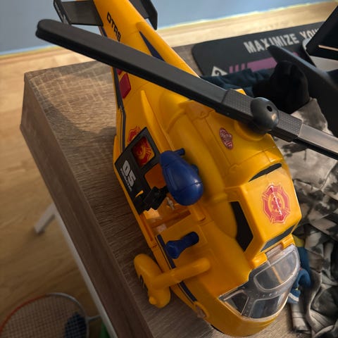 Redningshelikopter /lekehelikopter med båre, i fin stand og virker som det skal. Kjøpt på Ringo for noen år siden.