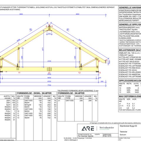 To av takstolene er ca. 5.10 lang og de to andre ca. 4.90