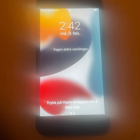 Skjermen ser veldig fin ut uten riper. Selges uten emballasje og lader.