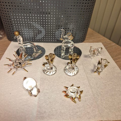 Vintage glassblåste håndlagde dekorative figurer. 2 av dem er skadet. Se bilder. Fra 4-10cm