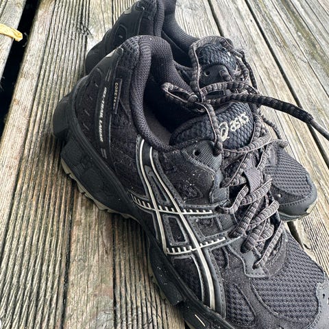 Selger en pent brukt Brooks Cascadia 16 goretex dame sko i størrelse 38.5, svart farge med litt oransje rose skoliste og accent. Se bilder for detaljene