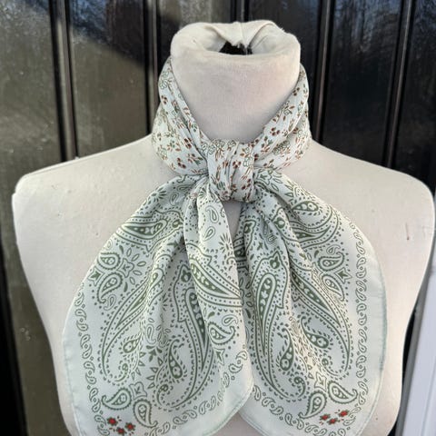 Veldig myk og fin behagelig skjerf. Det er kjøpt som silke, men jeg tror ikke det er ekte silke. Det er nok en fin blanding som ser ut som silke. Helt nytt. Størrelse 70x70cm. Kan gjerne sende med posten til 31.-