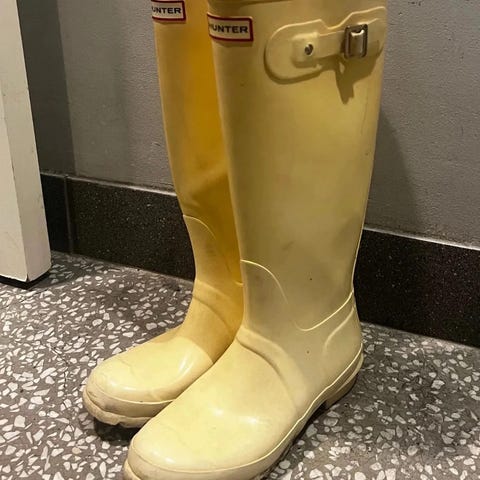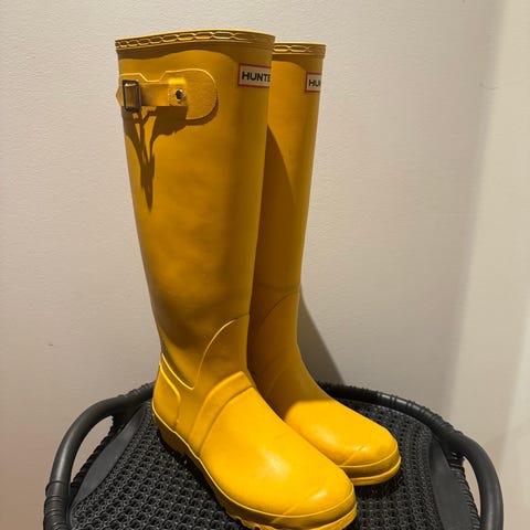 Beige Hunter gummistøvler i str 37. Litt skitt bak ellers i god stand. Normal i str. Nyoris 1599,-Ingen retur