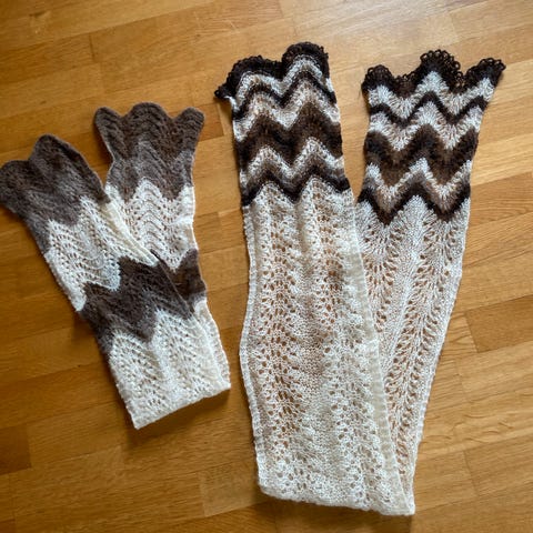 Sett med hansker. Pannebånd og leggings i kul gul farge. Frisk opp antrekket med litt tilbehør i knallfarge. Passer ungdom/ voksen. Kan sende