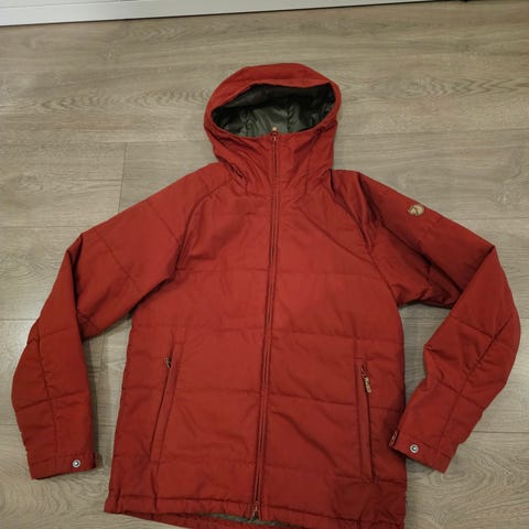 Selger en Fjällräven Övik Parka i en veldig fin oransje farge, en farge som virkelig skiller seg ut i vintermørket. Jakken kombinerer klassisk dunvarme med slitesterkt G-1000-materiale, og den er kjent for høy kvalitet og tidløst design.