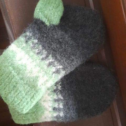 Håndlaget Strikket Lue og Votter Sett Blomster Mønster Beige Blå M