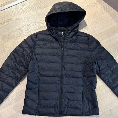 Tynn dunjakke i str S fra Cubus i fargen svart. Ingen hull el slitasje.