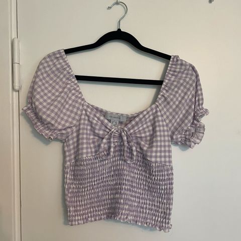 Brun og hvit rutete topp fra Zara, selges fordi det ikke var helt min stil! Toppen har flere strikker i midjen og dekorative sløyfer foran 🌸. Blonder langs utringningen og ermene. Normal til liten i størrelsen (S, men passer nok fint en XS også!).