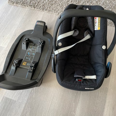 Britax Römer Bilsete til baby med kapasitet for barn opp til 13 kg. Setet har svart polstring og er designet for bruk i bil for å sikre barnets sikkerhet under transport.