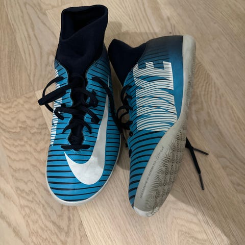 Nike Mercurial fotballsko i svart farge, str. 38,5. Skoene har knotter for bruk på gressbaner og en høy ankelstropp for ekstra støtte. Tilpasset for fotballspill med fokus på kontroll og komfort.
