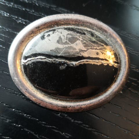 Camilla Pihl Rosa Sløyfe brosje laget av sølv. Designet som et rosa bånd, egnet for både menn og kvinner. Produktet er ment å vise støtte og bevissthet, spesielt i forbindelse med Rosa Sløyfe-kampanjen.