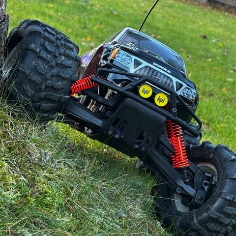 Kort sagt – jeg vil selge denne bilen. På det første bildet står modellnavnet – Savage 21 4WD Giant Monster Truck fra merket HPI Racing. Bilen er fullstendig vedlikeholdt, har lite bruk og er i utmerket stand. Selges på grunn av manglende behov. Bilen er ferdig vedlikeholdt og riktig justert, så den nye eieren kan bare nyte den uten ekstra kostnader – alt nødvendig vedlikehold er gjort i tide. I tillegg følger det med en starter som kostet 2000 kroner.