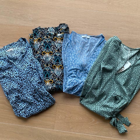 3 stk kjoler str 36. Alle tre er rette i modellen. Den svarte og den grønne er fra New Yorker og har 3/4 arm. Den blomstra er fra H&M.