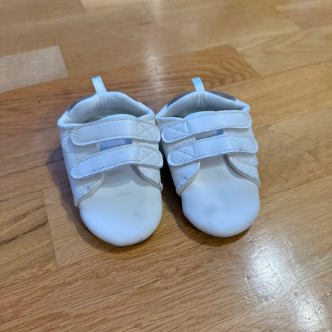 Nye babysko. Kun prøvd. Rift i pappeske da jeg åpnet den litt hardt. Men ellers helt nye. Ny pris 249
