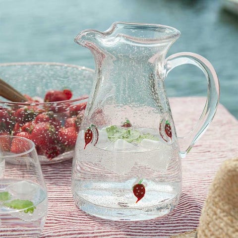 Drikke /saft/ vann /kjøkken/brus kanne med glass med jordbær