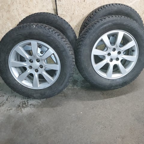 Fire bra piggfrie dekk fra min gamle Subaru Forester 2010 modell. Brukt 1,5 sesonger. Produsert uke 4 i 2022.