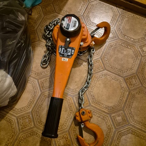 Vital Lever Block Talje med kapasitet på 1.6 tonn. Kjettingstalje produsert i Japan, Egnet for løfting og flytting av tunge gjenstander i industriell eller verkstedsbruk. Løftehøyde 1,5 m. Har flere.Noe overflate rust, men det mekaniske i topp form.