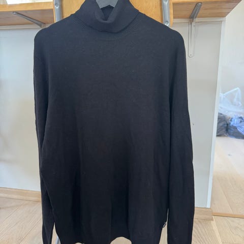Helt ny! Kun klippet av lapp og prøvd på. Nypris 1600kr. Selger for 900kr. J. Lindeberg genser i blå farge med høy hals størrelse XXL for herre. Genseren har langermet design og er laget for å gi komfort og varme. 100 % merino ull og nydelig blå farge.