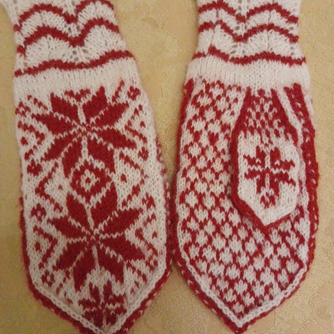 Håndstrikkede ullstrømper med vintermønster i sort og grå. Strømpene har et tradisjonelt nordisk design med snøkrystallmotiv. Egnet for kalde værforhold, laget av ull for varme og komfort.