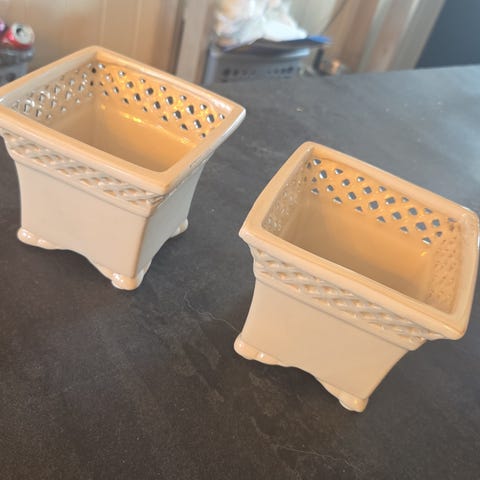 Blomsterpotter kjøpt på Hageland.20 cm høye og 14,5x14,5 innermål oppe. Selges samlet. 7 stk