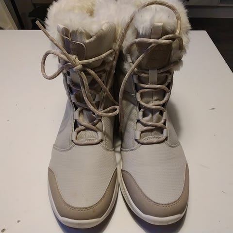 Ubrukte vinterstøvler fra den sveitsiske skoprodusenten JOYA som produserer sko og støvler med en unik såleteknologi som sikrer optimal trykkfordeling under foten og avlaster trykket på ledd og ryggrad. Overdelen er av myk og pustende mikrofiber. PROOF-TEX membran. Farge lysgrå/hvit. Leveres i original eske. Nypris kr 2499,-