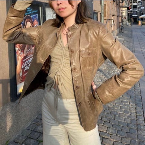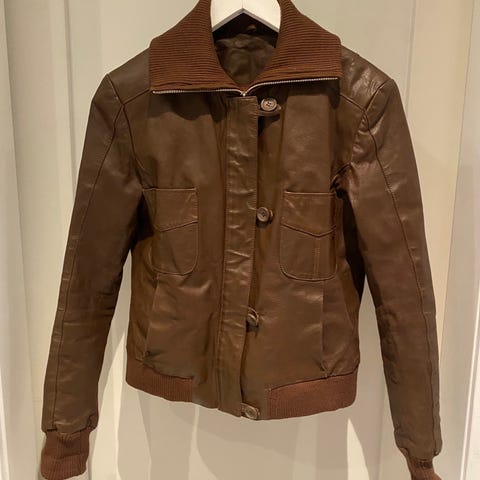 Fantastisk kul skinnjakke fra NY med kule detaljer selges. Kjøpt på vintage butikk på grunerløkka. Ekte skinn. Passer str. S/M.