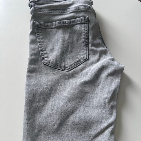 Cream bukser i størrelse L for dame, i grå farge. Str. 34 - kun brukt få ganger - for stor for datteren i huset og endret smak 😊