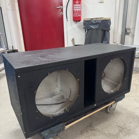Kraftig Crunch subwoofer i kasse, 12" (30 cm). Spiller bra og gir solid bass.