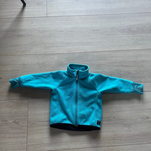 Pent brukt vindfleece fra Polarn O Pyret i str 86 selges. Refleksdetaljer og hull til tommelen. Ingen synlige skader.
