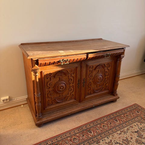 Kjenner ikke til alder, materiale eller historie. Har hatt det hengende på hytta de siste tjue årene. Gi bud.