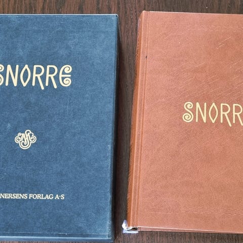 Snorre Kongesagaer boksett bestående av 2 bind med rød innbinding. Oversatt av Anne Holtsmark og Didrik Arup Seip, redigert av Finn Hodnebo og Hallvard Magerøy. Inneholder tegninger av Halfdan Egedius, Christian Krohg, Gerhard Munthe, Eilif Pettersen, Erik Werenskiold og Wilhelm Wetlesen. Utgitt av Gyldendal Norsk Forlag, Oslo.