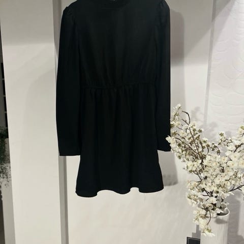 Pen svart kjole fra Na-kd i str. 38. Langermet med volang i skjørtet. Pent brukt, ingen bruksmerker. Behagelig og fin på.