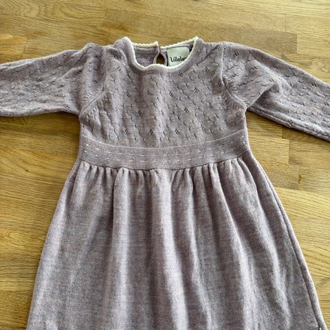 Name it Lilla Strikket Kjole i størrelse 62. Laget av strikket materiale med mønsterdetaljer på skjørtedelen. Langermet design. 100% ull.